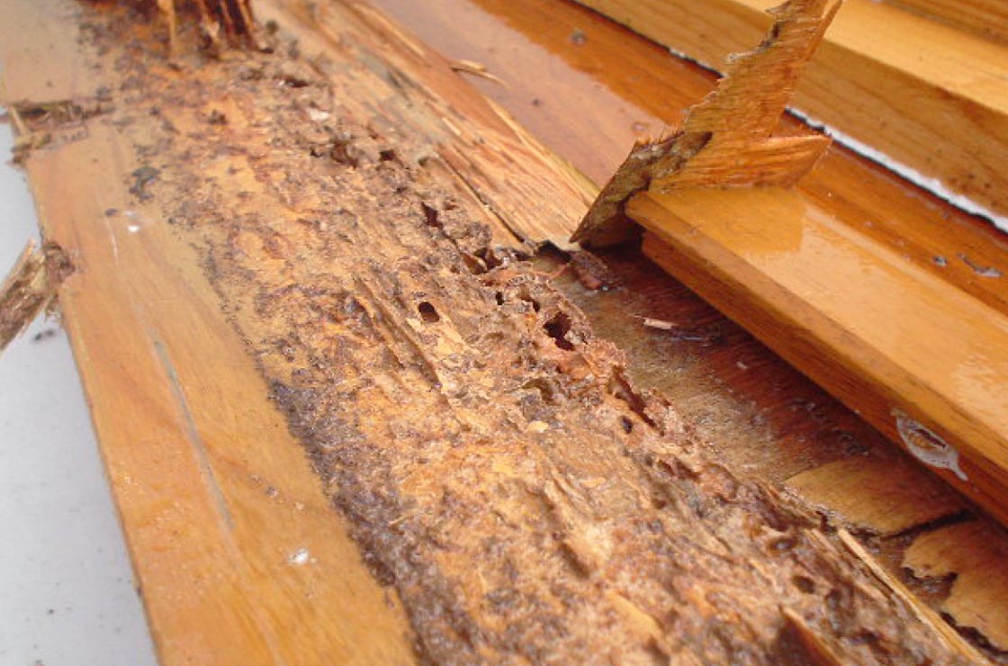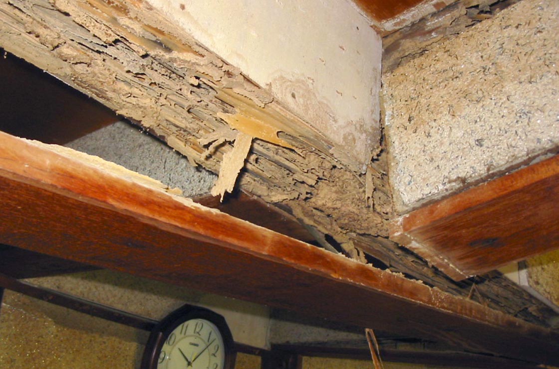 光や風を嫌うシロアリは、蟻道(ギドウ)という土のトンネルを作って移動し、見えないところから住まいのあらゆるところに侵入します。侵入したシロアリは、木材の主成分であるセルロースから栄養を得ています。シロアリ以外にも木材をかじる虫はいますが、せいぜい穴を開ける程度です。一方シロアリは木材のほとんどを食べ尽くしてしまうんです。そうしてシロアリに食べ尽くされた木材は強度が著しく低下してしまい、構造材としての機能を果たさなくなります。そのため、地震に対する耐久力も劣る事になります。