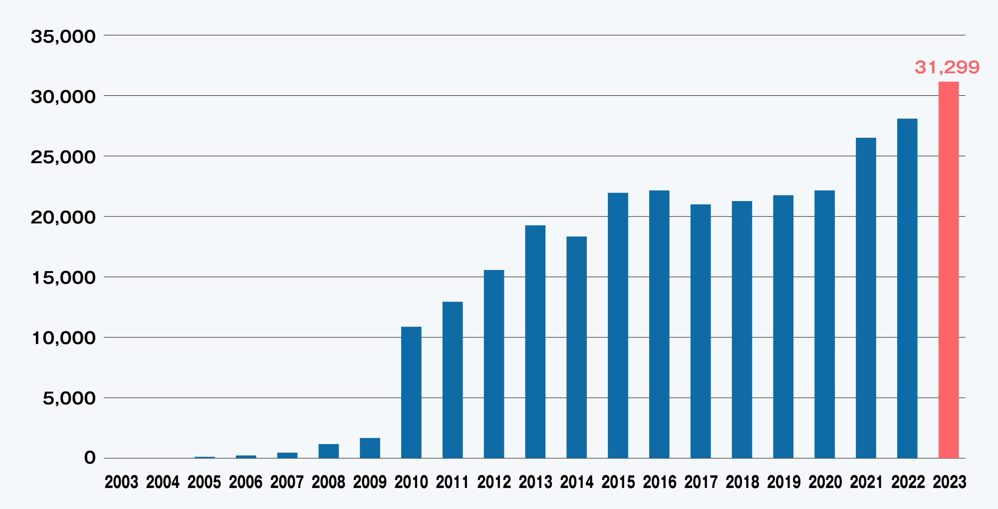2003年立ち上げから、仲間も増え2023年は施工実績として3万棟を超えました。これからも多くの仲間と安心してサービスを受けて頂ける組織作りを進めてまいります。また近年では施工スタッフのマイスター性を導入し接客品質や施工品質の改善に務めてまいります。